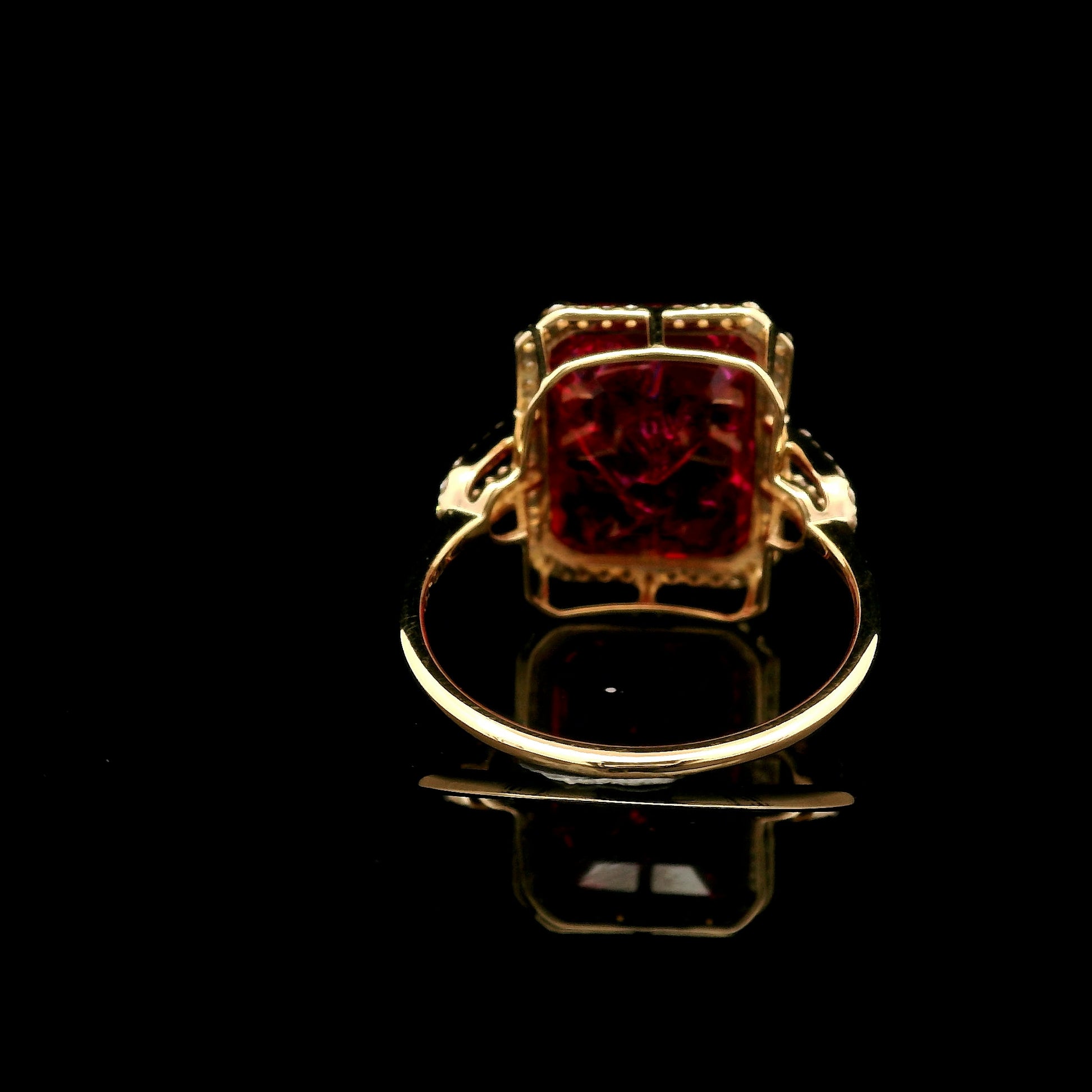 9.96 Ct Emerald Cut Lab Grown Ruby 14K Gold Ring